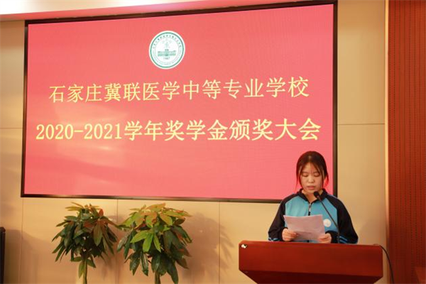 冯瑞娟副校长宣读了《石家庄冀联医学中等专业学校2020-2021学年奖学金获奖人员的决定》。